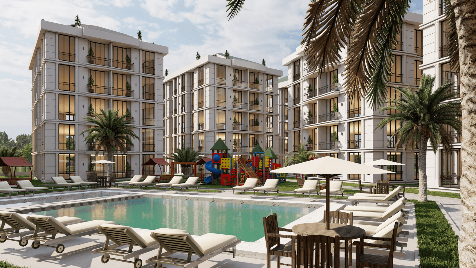 Комплекс расположен в районе Бююкчекмедже и предлагает высокий уровень комфорта благодаря развитой инфраструктуре. На территории доступны бассейн, фитнес-зал, сауна, турецкий хамам, кинотеатр, охрана и закрытый паркинг, что делает проживание удобным и безопасным.